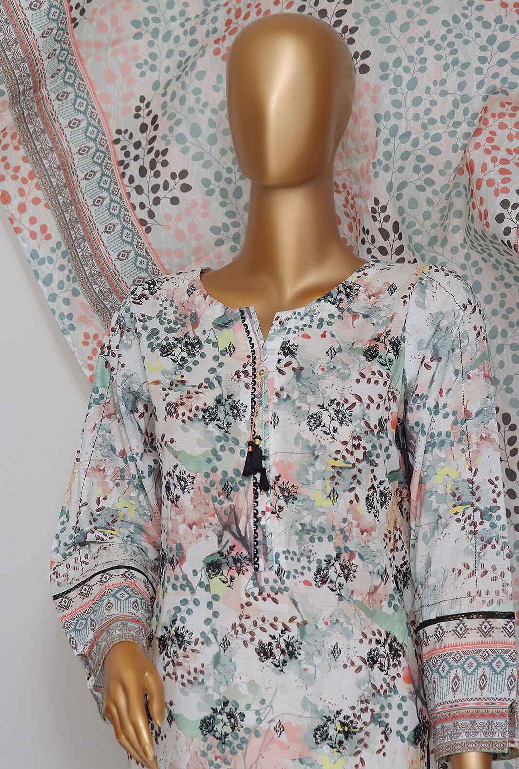 • Digitla Printed Lawn Back & Sleeves