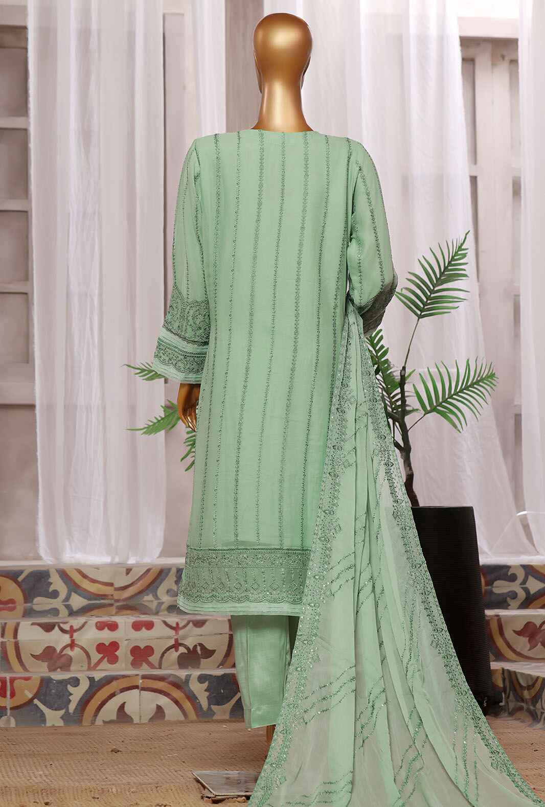 3 Piece Stitched Fasaane HZK-185 Dull Green Vol-06