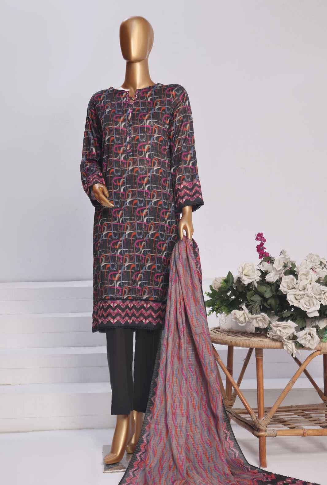 Experience the perfect blend of comfort and style with our pure lawn fabric featuring a digital printed zari lawn dupatta, adding a touch of vibrant elegance to your wardrobe.