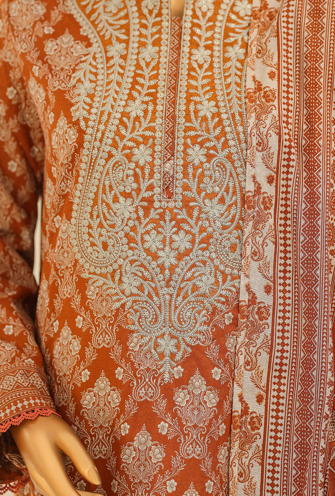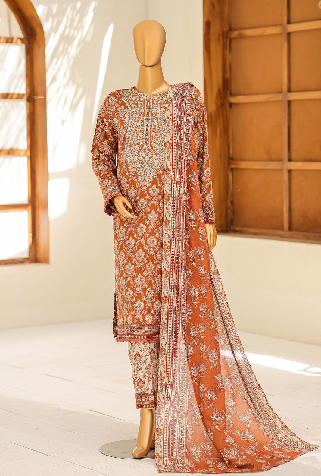 Daily Wear by HZ Textiles Embroidered Lawn Suit Unstitched 3 Piece Amber Rust-3308 Vol-02
