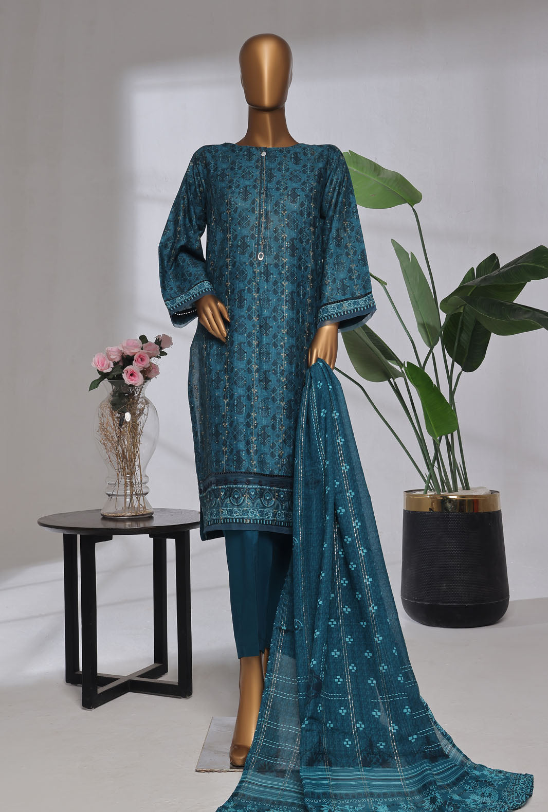 Damask by HZ Textiles Printed Jacquard Suit Stitched 3 Piece DJP-3P-034 Turquoise