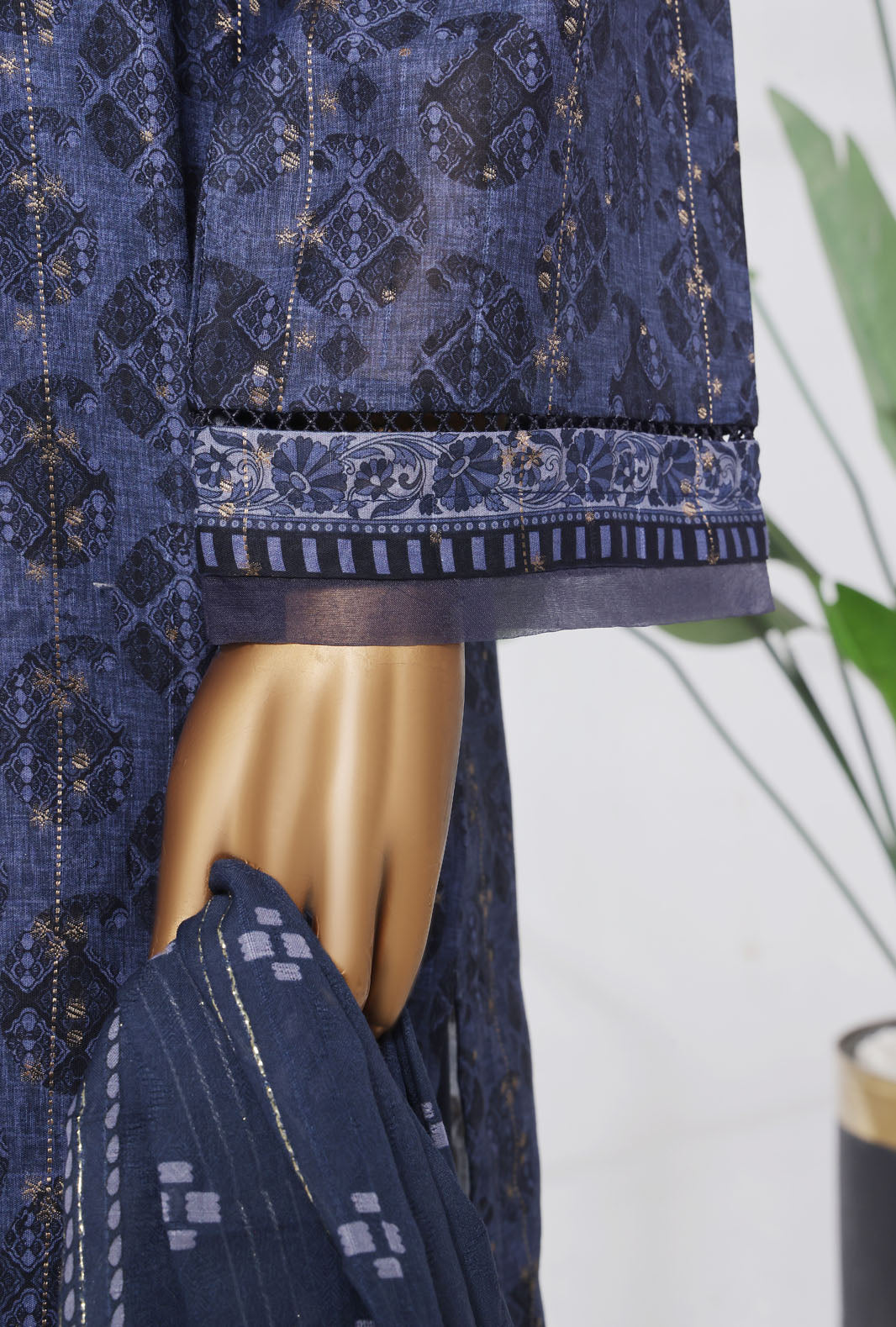 Damask by HZ Textiles Printed Jacquard Suit Stitched 3 Piece DJP-3P-035 Ink Blue