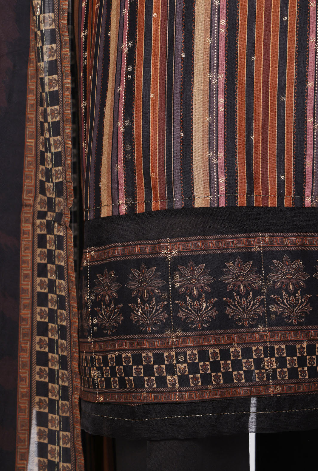 Damask by HZ Textiles Printed Jacquard Suit Stitched 3 Piece DJP-3P-036 Multi Rust