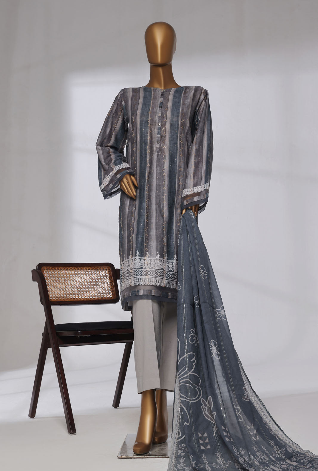 Experience the perfect blend of comfort and style with our pure Jacquard fabric featuring a digital printed diamond fancy dupatta, adding a touch of vibrant elegance to your wardrobe.