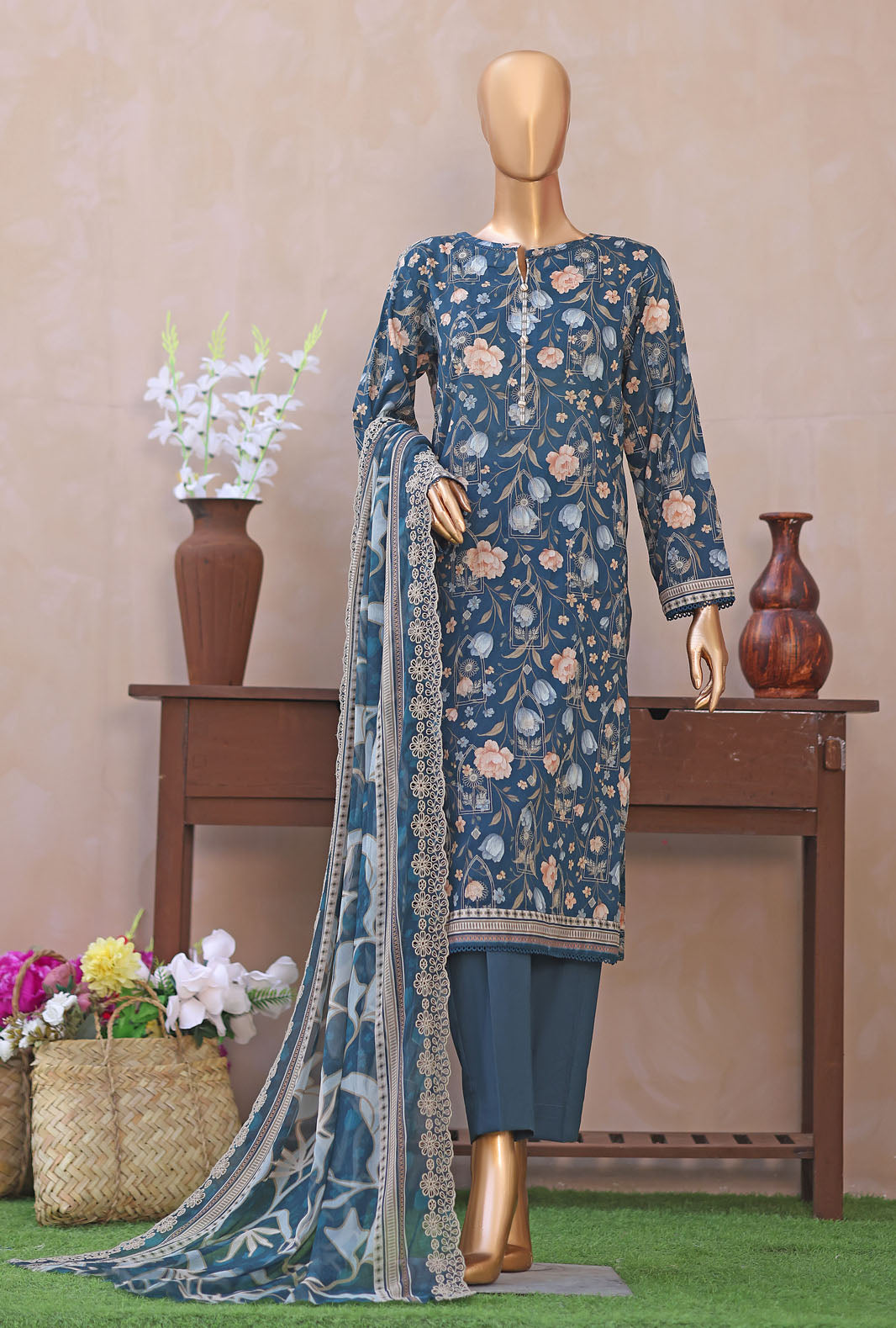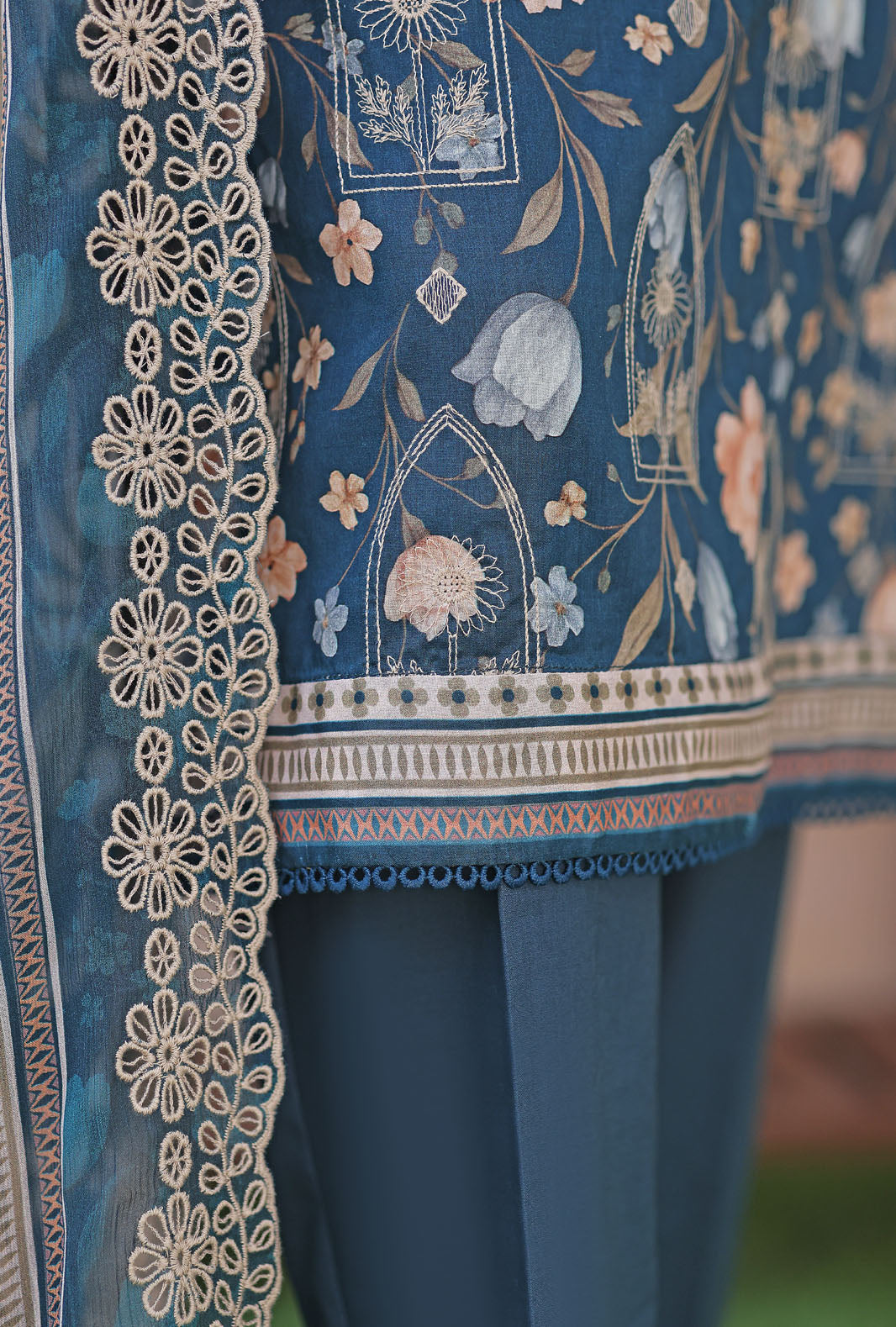 Experience the perfect blend of comfort and style with our pure Lawn fabric featuring a premium digital printed thread embroidered bamber chiffon dupatta, adding a touch of vibrant elegance to your wardrobe.