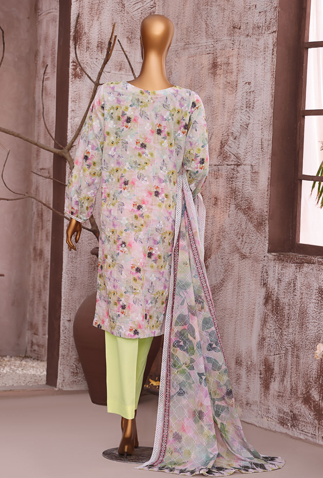 Experience the perfect blend of comfort and style with our pure lawn fabric featuring a digital printed cotton thread embroidered voile lawn dupatta, adding a touch of vibrant elegance to your wardrobe.