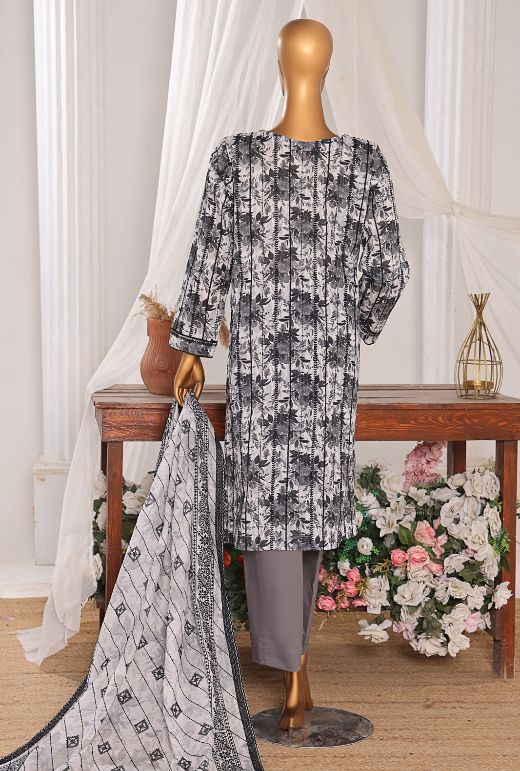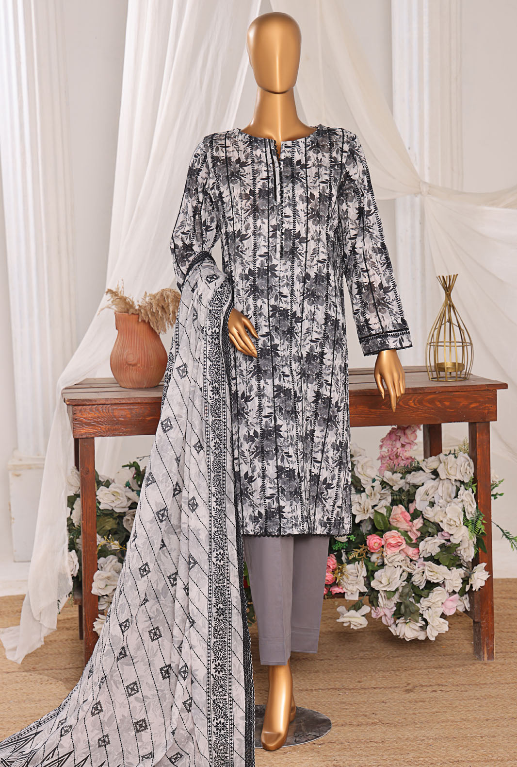 Experience the perfect blend of comfort and style with our pure lawn fabric featuring a digital printed cotton thread embroidered voile lawn dupatta, adding a touch of vibrant elegance to your wardrobe.