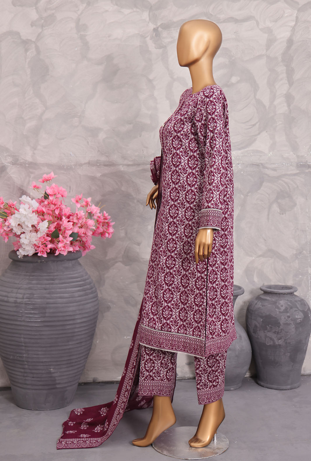 Experience the perfect blend of comfort and style with our pure Khaddar fabric featuring a airjet premium printed khaddar dupatta, adding a touch of vibrant elegance to your wardrobe.
