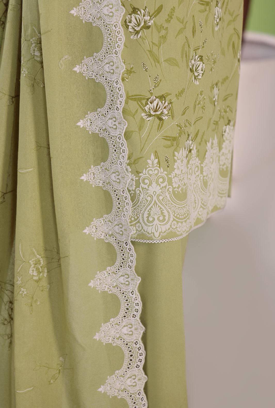 Experience the perfect blend of comfort and style with our pure Karandi fabric featuring a premium printed thread embroidered cutwork cotton karandi dupatta, adding a touch of vibrant elegance to your wardrobe.