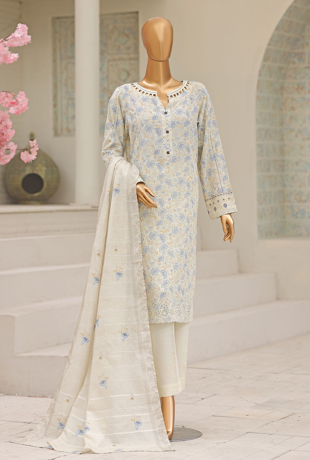 Experience the perfect blend of comfort and style with our pure Karandi fabric featuring a dyed chiffon fancy lorex dupatta, adding a touch of vibrant elegance to your wardrobe.
