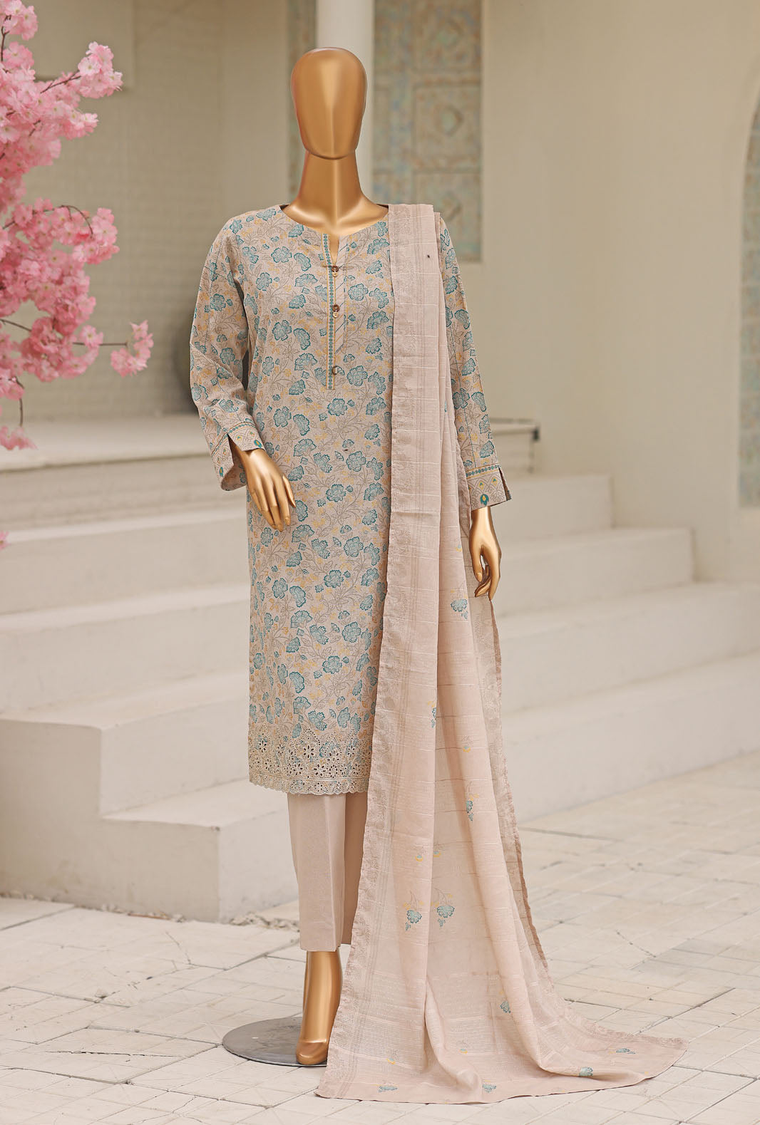 Experience the perfect blend of comfort and style with our pure Karandi fabric featuring a dyed chiffon fancy lorex dupatta, adding a touch of vibrant elegance to your wardrobe.