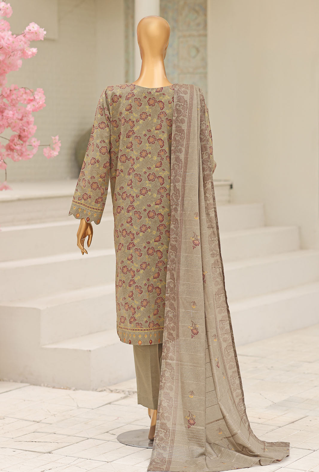 Experience the perfect blend of comfort and style with our pure Karandi fabric featuring a dyed chiffon fancy lorex dupatta, adding a touch of vibrant elegance to your wardrobe.