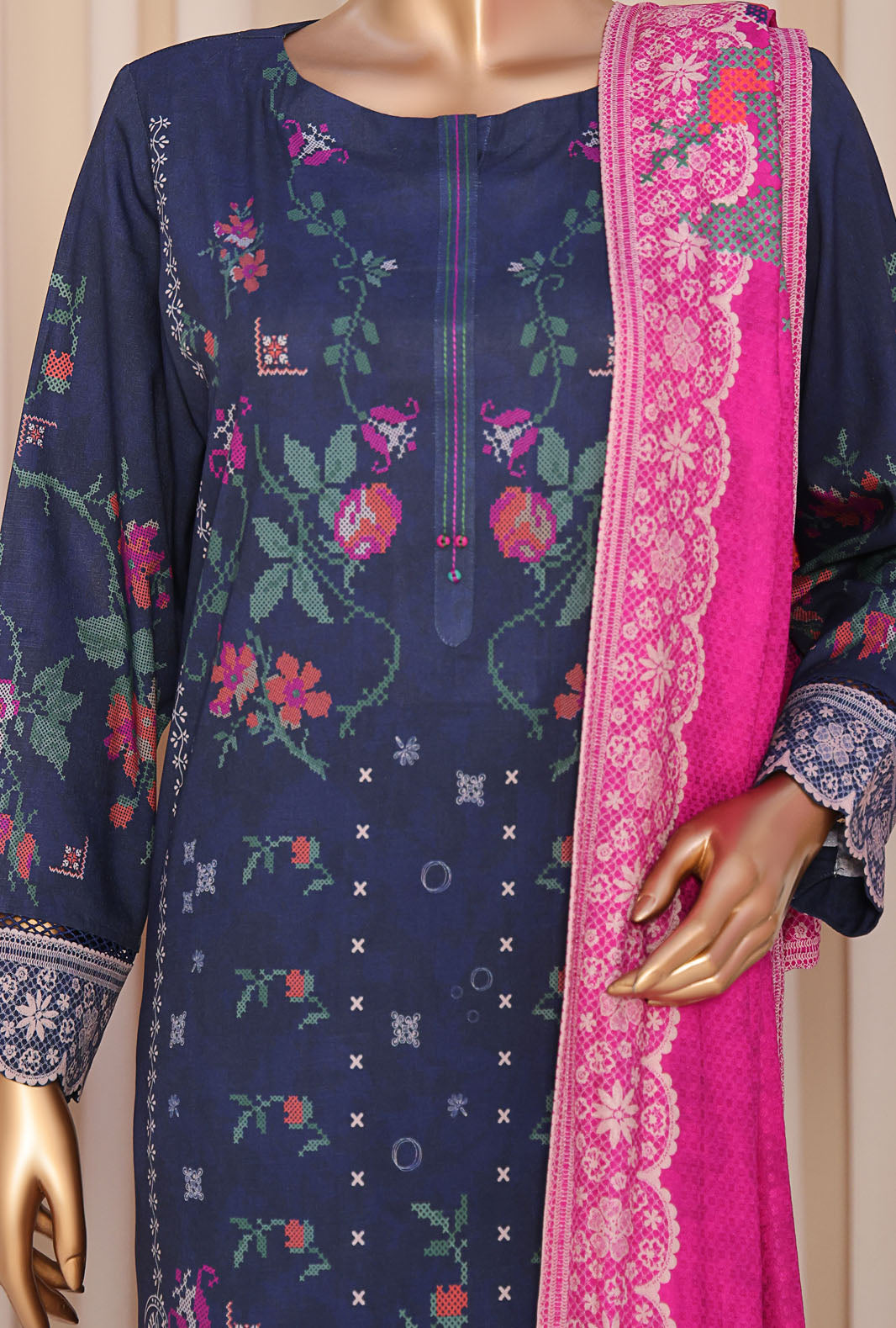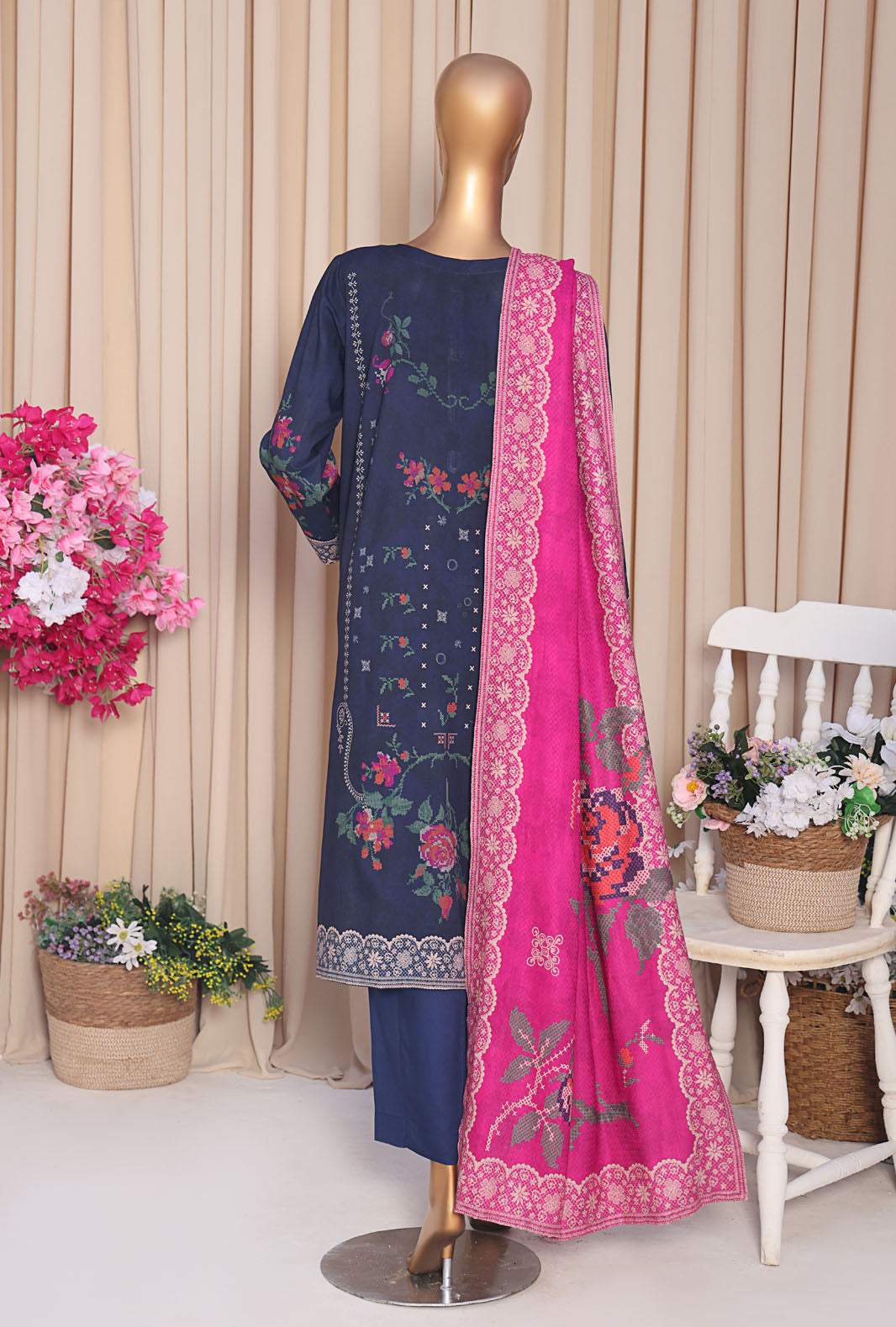 Linen Slub by HZ Textiles Printed Linen Suit Unstitched 3 Piece LSD-308 - Winter Collection