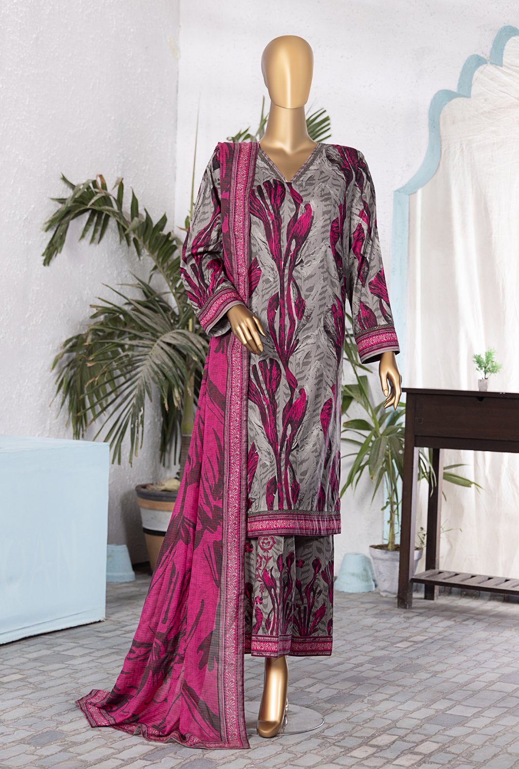 Experience the perfect blend of comfort and style with our pure linen fabric featuring a diamond voile fancy digital printed check dupatta, adding a touch of vibrant elegance to your wardrobe.