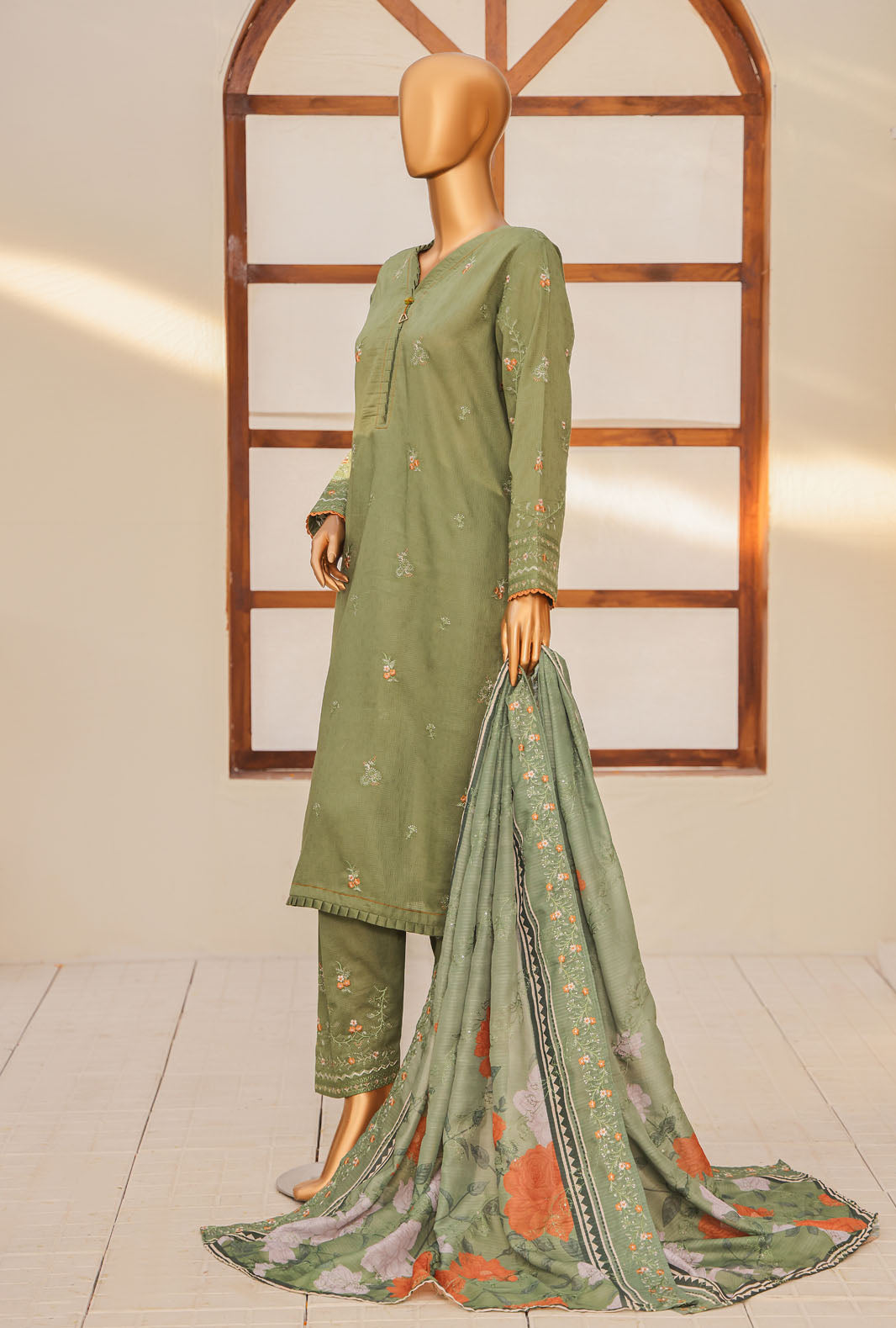 Experience the perfect blend of comfort and style with our pure cotton fabric featuring a digital printed fancy doria embroidered dupatta, adding a touch of vibrant elegance to your wardrobe.