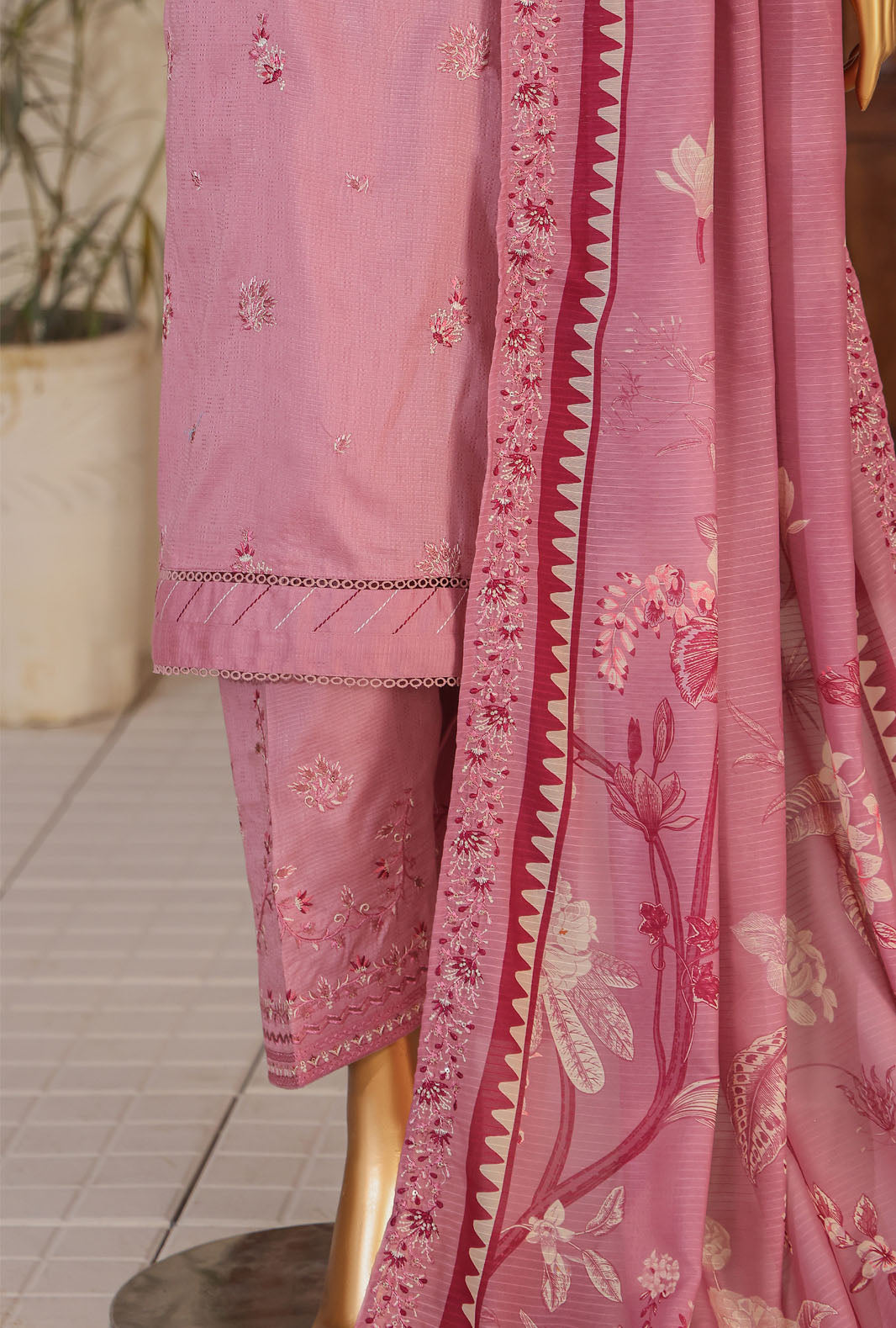 Experience the perfect blend of comfort and style with our pure cotton fabric featuring a digital printed fancy doria embroidered dupatta, adding a touch of vibrant elegance to your wardrobe.