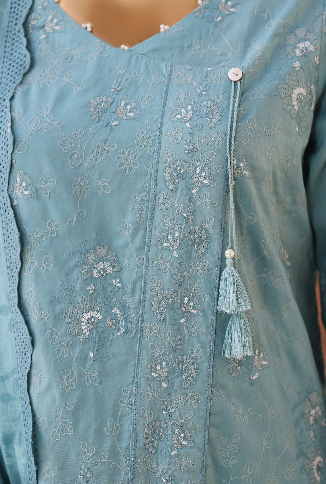 Experience the perfect blend of comfort and style with our pure lawn fabric featuring a printed embroidered lawn dupatta, adding a touch of vibrant elegance to your wardrobe.