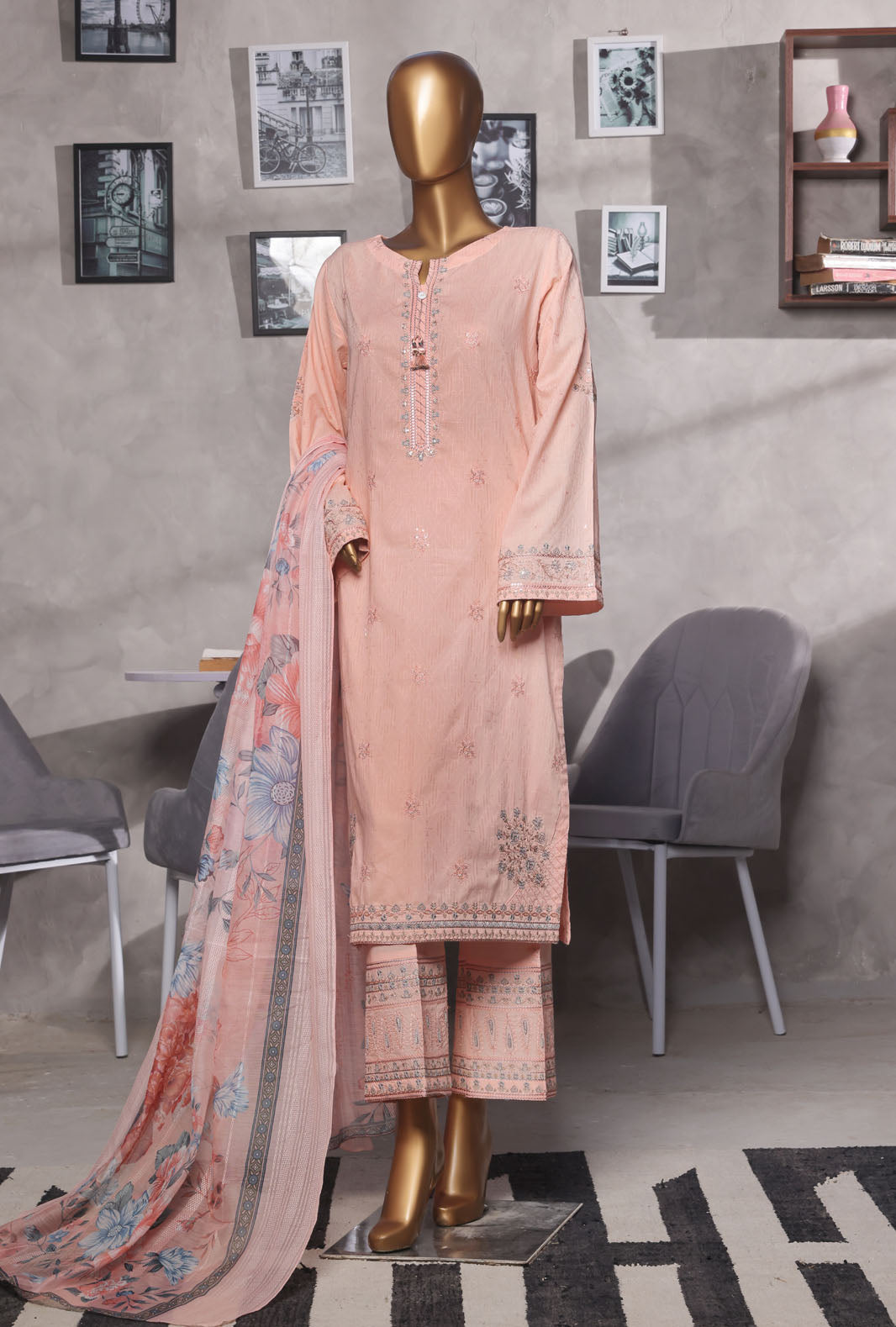 Muse by HZ Textiles Embroidered Suit Jacquard Stitched 3 Piece SSJ-2502 Peach Vol-02 - Ready To Wear