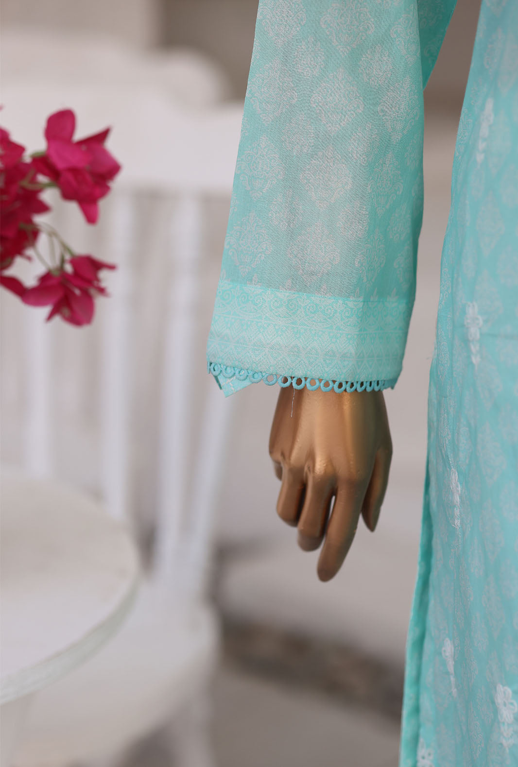 Experience the perfect blend of comfort and style with our pure lawn fabric featuring a digital printed jumpstitch doriya fancy dupatta, adding a touch of vibrant elegance to your wardrobe.