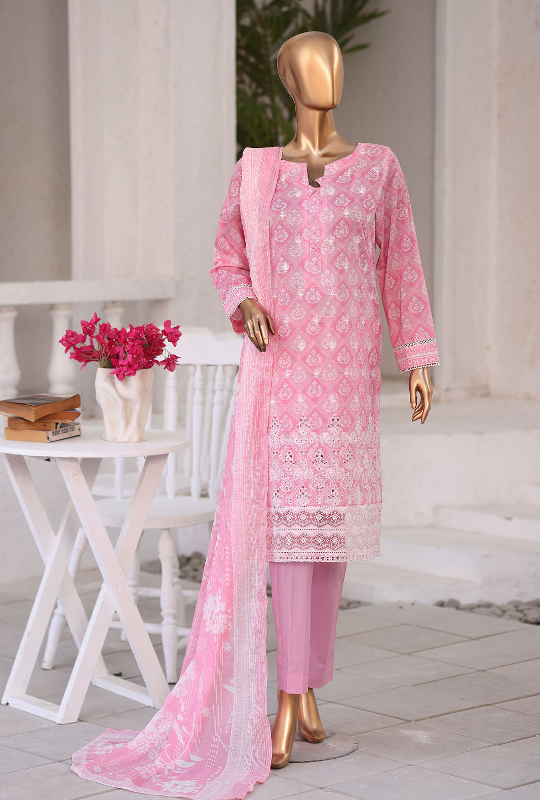 Experience the perfect blend of comfort and style with our pure lawn fabric featuring a digital printed jumpstitch doriya fancy dupatta, adding a touch of vibrant elegance to your wardrobe.