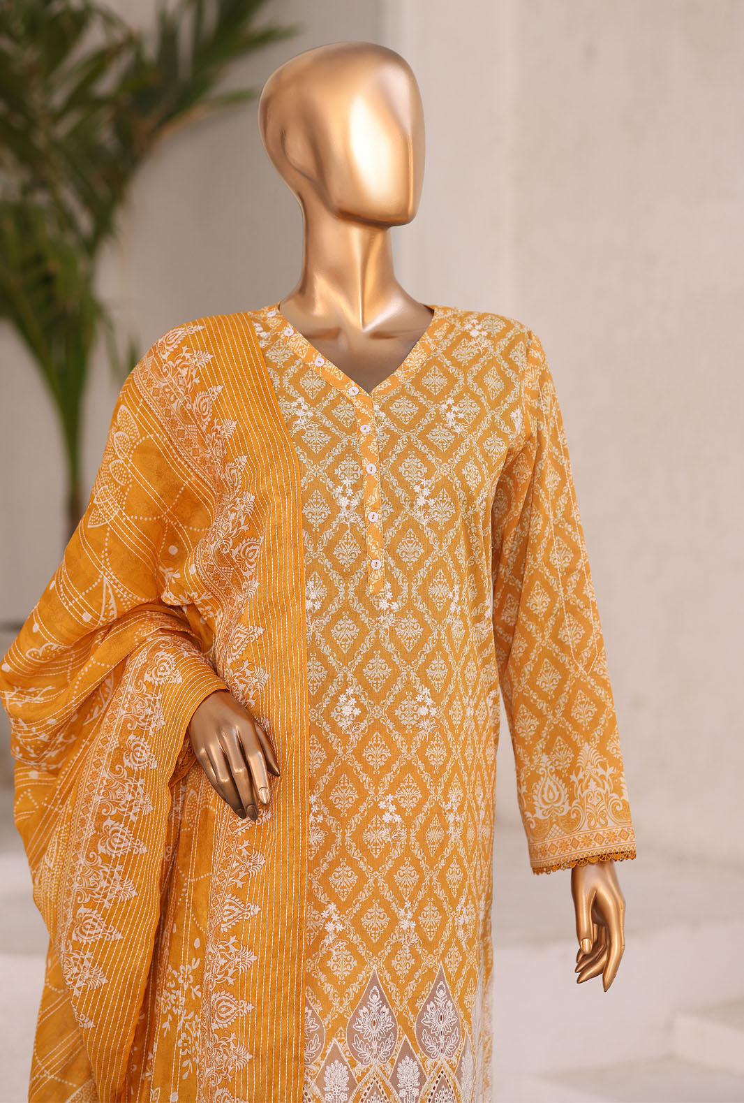 Experience the perfect blend of comfort and style with our pure lawn fabric featuring a digital printed jumpstitch doriya fancy dupatta, adding a touch of vibrant elegance to your wardrobe.