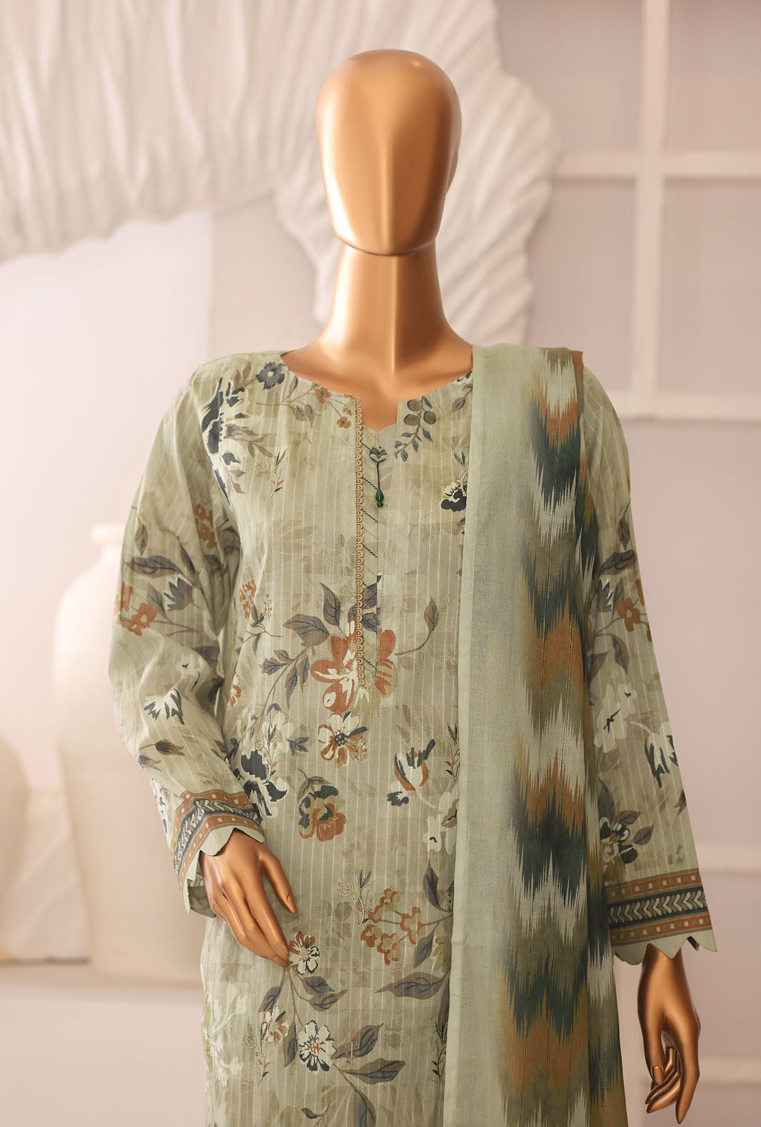 Experience the perfect blend of comfort and style with our pure lawn fabric featuring a digital printed linokara tarkashi lawn dupatta, adding a touch of vibrant elegance to your wardrobe.