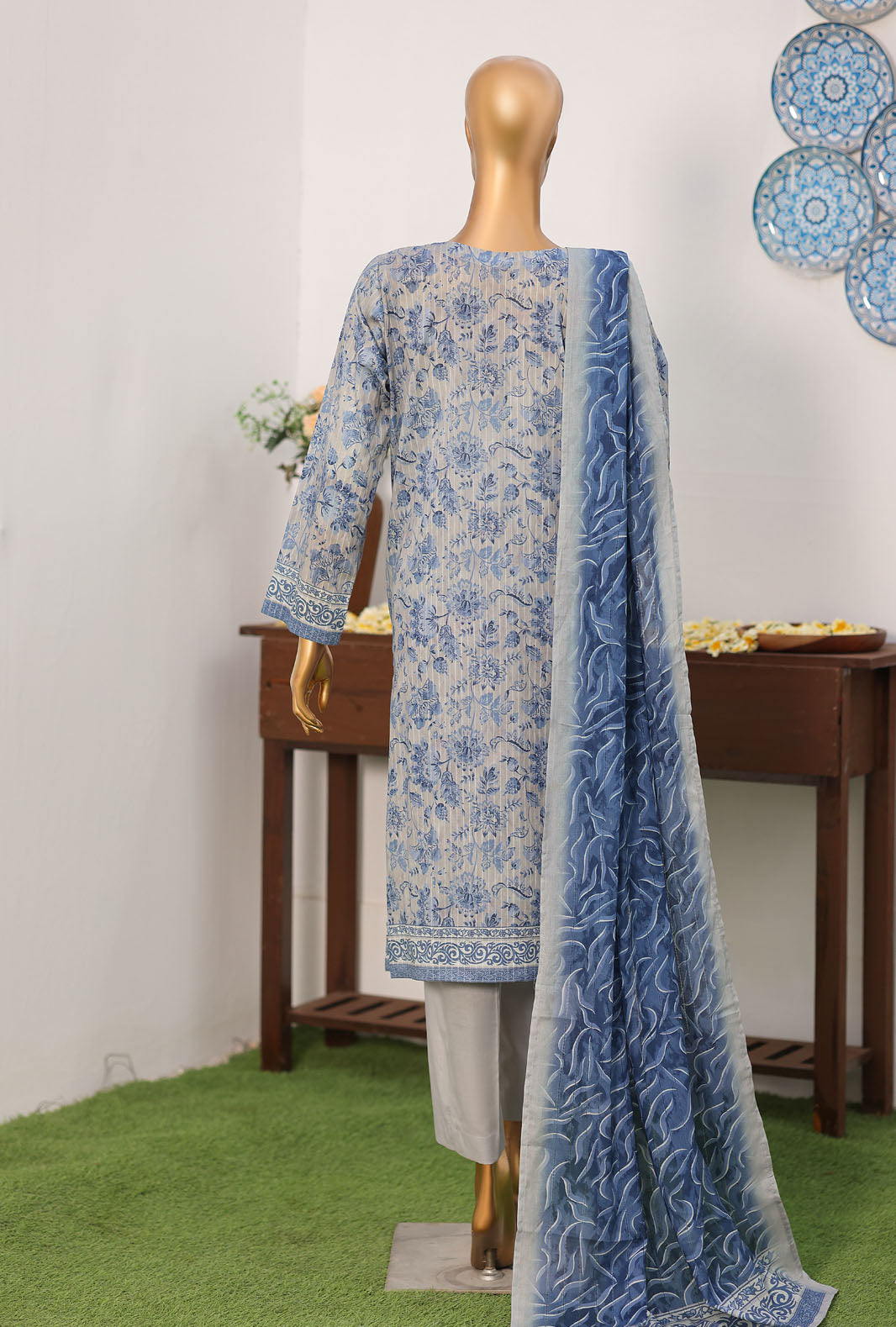 Experience the perfect blend of comfort and style with our pure lawn fabric featuring a digital printed linokara tarkashi lawn dupatta, adding a touch of vibrant elegance to your wardrobe.