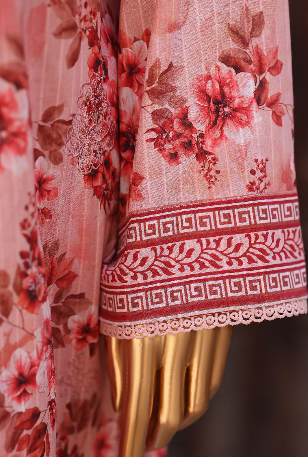 Experience the perfect blend of comfort and style with our pure lawn fabric featuring a  digital printed linokara tarkashi embroidered lawn dupatta, adding a touch of vibrant elegance to your wardrobe.