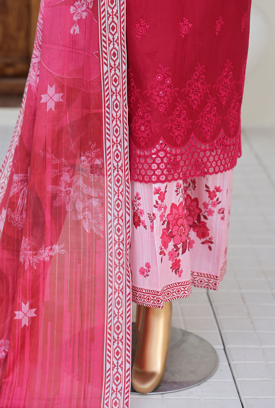 Experience the perfect blend of comfort and style with our pure cambric fabric featuring a digital printed ninokara lawn dupatta, adding a touch of vibrant elegance to your wardrobe.