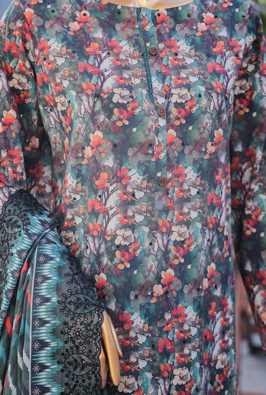 Experience the perfect blend of comfort and style with our pure Lawn fabric featuring a digital printed embroidered cutwork jaal lawn dupatta, adding a touch of vibrant elegance to your wardrobe.