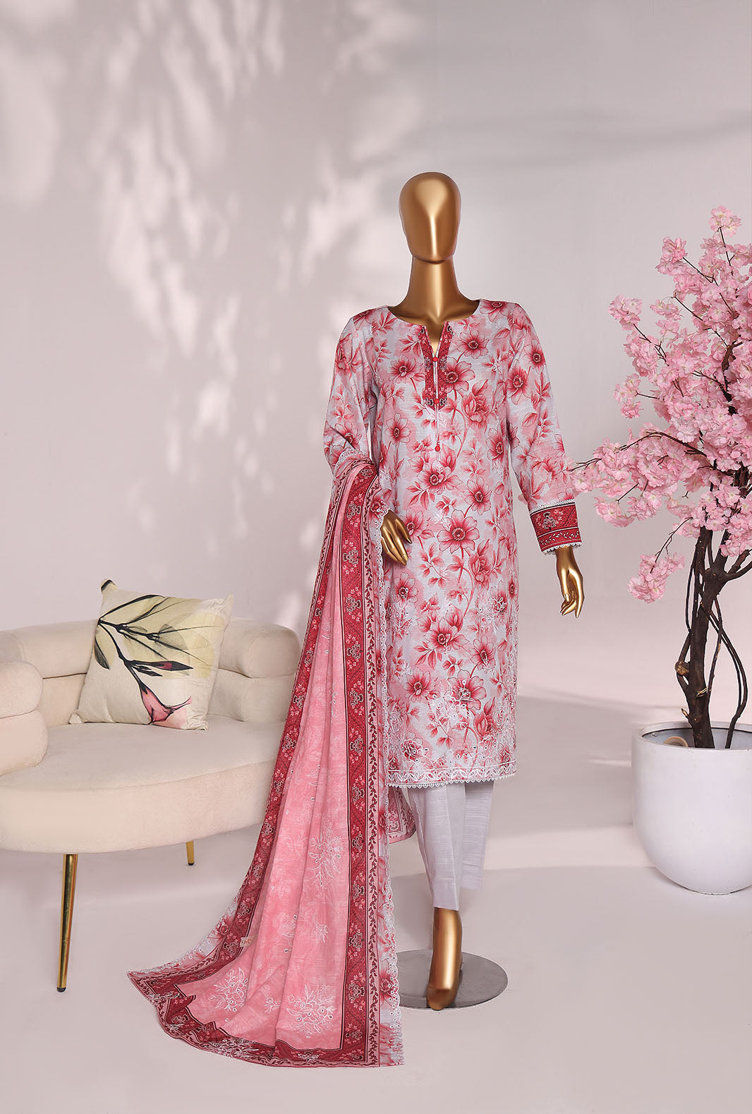 Experience the perfect blend of comfort and style with our pure khaddar fabric featuring a digital printed embroidered khaddar cutwork dupatta adding a touch of vibrant elegance to your wardrobe.