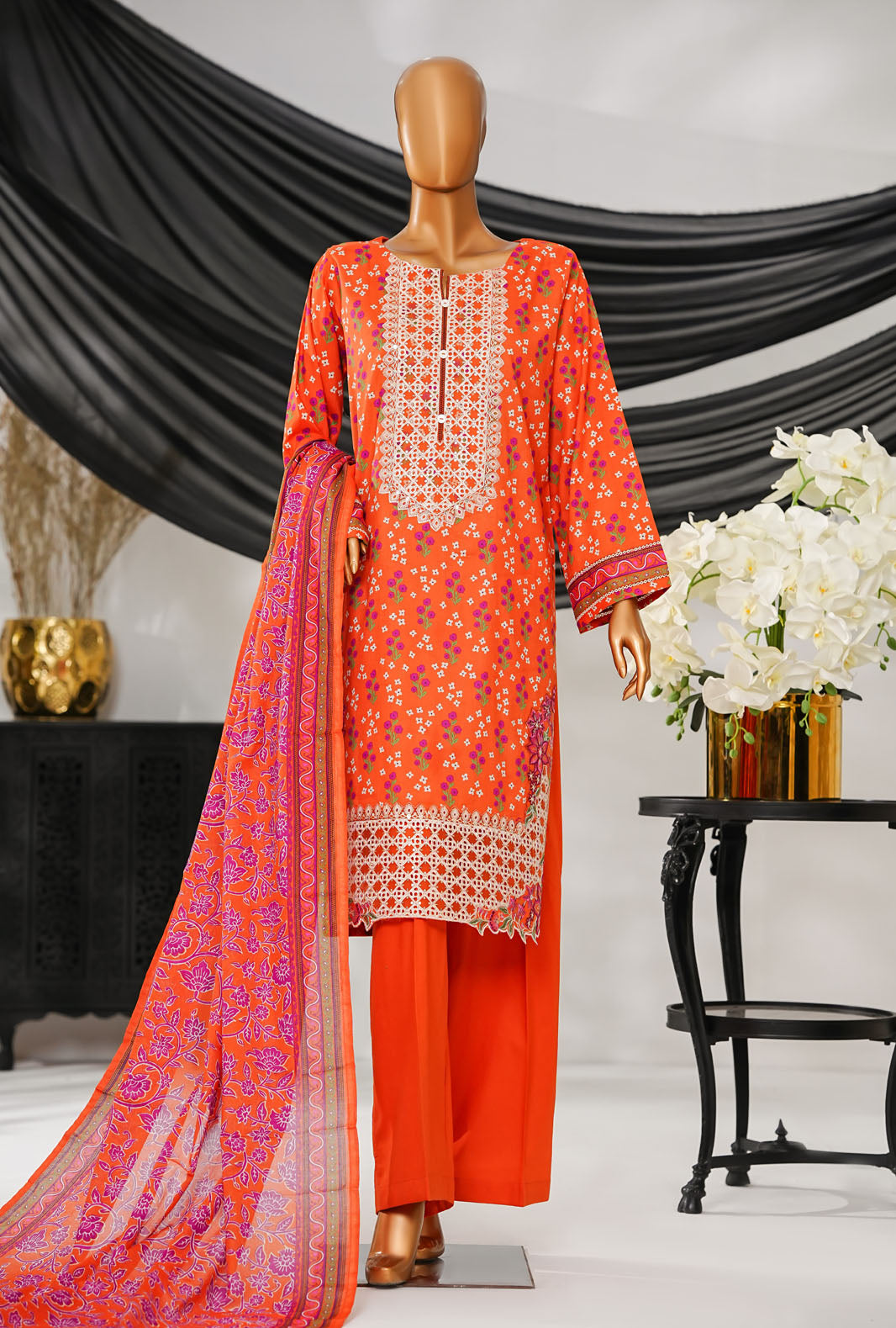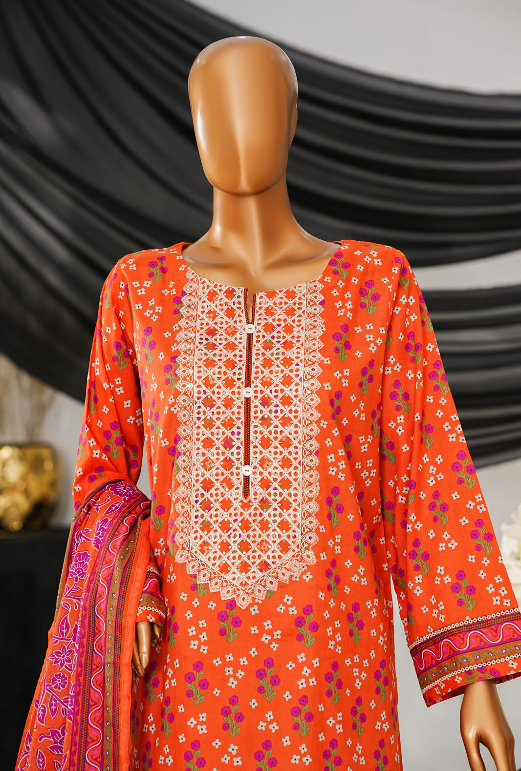 Thread & Needle by HZ Textiles Printed Cambric Suit Stitched 3 Piece POEL-3P-010 Orange