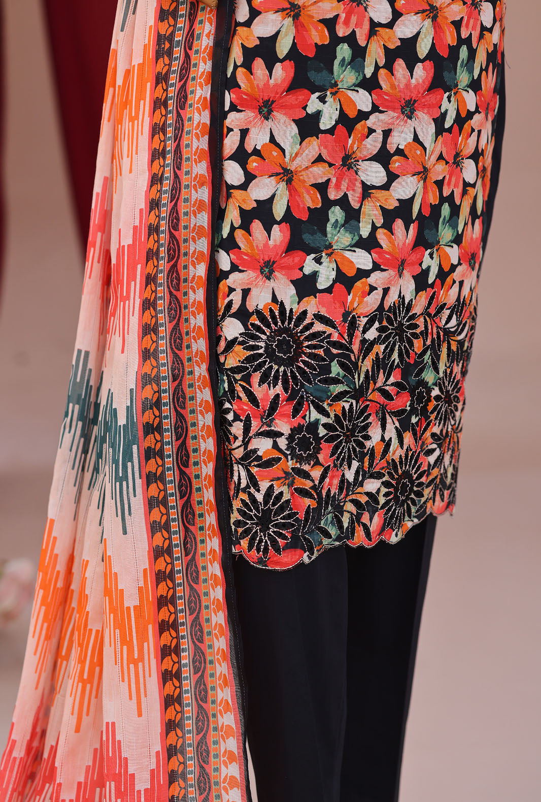 Experience the perfect blend of comfort and style with our pure Lawn fabric featuring a digital printed ninokara tarkashi printed dupatta, adding a touch of vibrant elegance to your wardrobe.