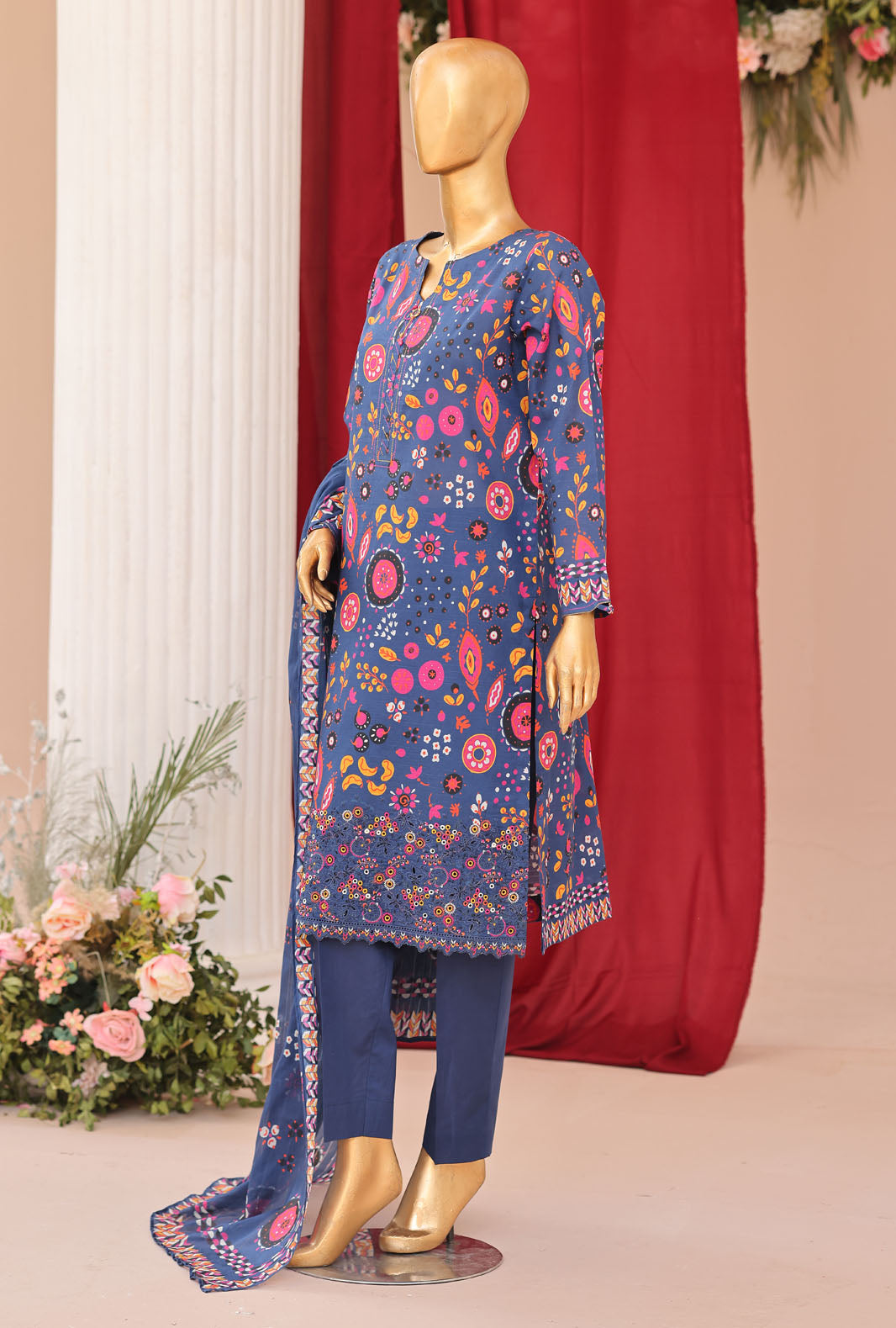Experience the perfect blend of comfort and style with our pure Lawn fabric featuring a digital printed ninokara tarkashi printed dupatta, adding a touch of vibrant elegance to your wardrobe.