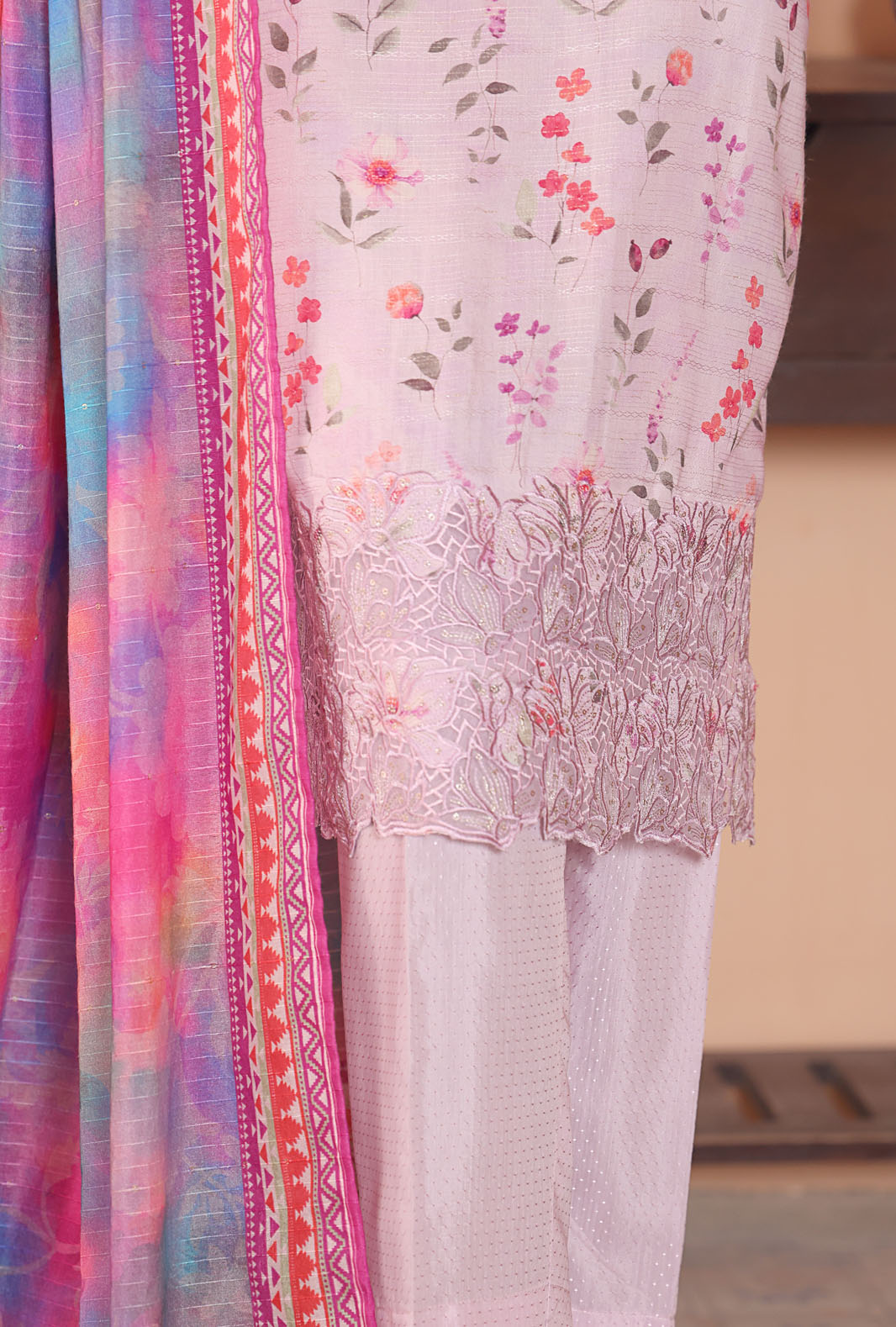 Experience the perfect blend of comfort and style with our pure viscose fabric featuring a digital printed viscose sequence slub dupatta adding a touch of vibrant elegance to your wardrobe.